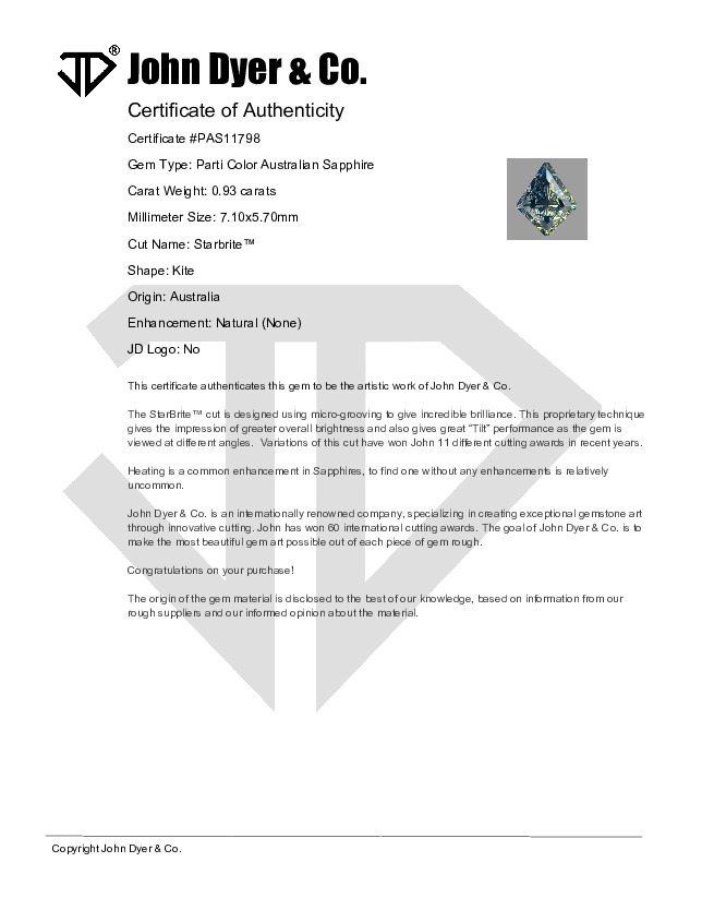 This 0.93-carat Parti Color Australian Sapphire gemstone features the Starbrite™ cut. Refer to the table below for detailed information about this gemstone.
