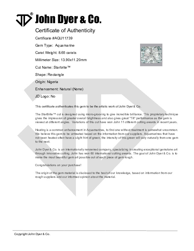 This 8.65-carat Aquamarine gemstone features the Starbrite™ cut.