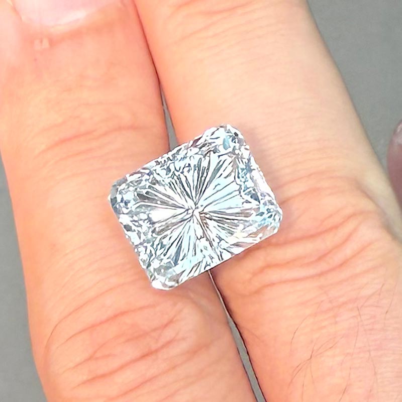 Dive into the cool, tranquil beauty of this Aquamarine, expertly shaped into a sleek rectangle and brought to life with the dazzling brilliance of the Starbrite™ Cut. Mined from the gemstone-rich lands of Nigeria, this aquamarine features a refreshing light blue hue that evokes the clarity and calm of tropical waters.