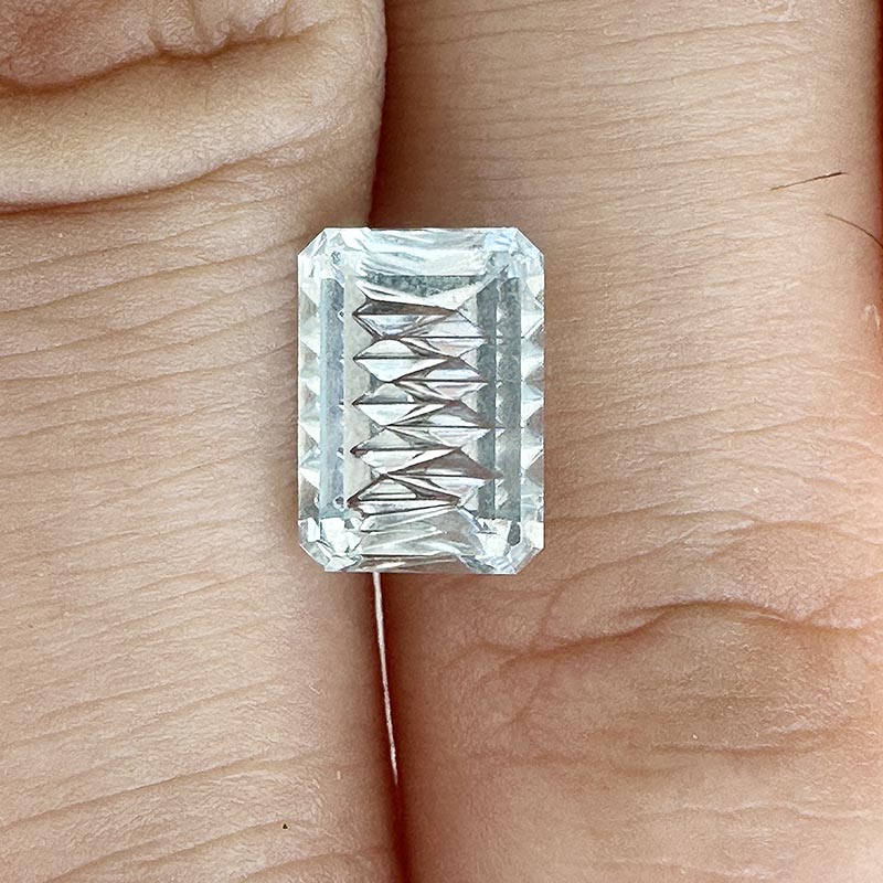 Crisp, luminous, and full of energy, this Aquamarine from Nigeria is precision-cut in a sleek rectangle shape and energized by the lively brilliance of the ZigZag™ Cut. Its cool blue hue evokes the calm of tropical waters, while the innovative faceting style adds dynamic sparkle and depth.
