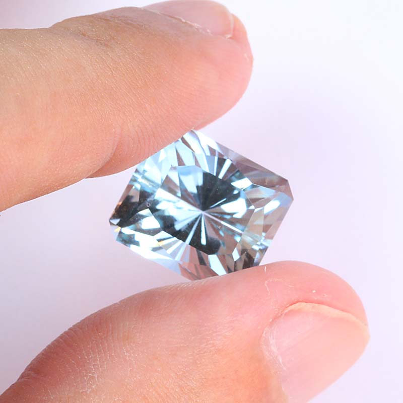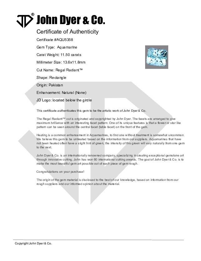 This 11.50-carat Aquamarine gemstone features the Regal Radiant™ cut.