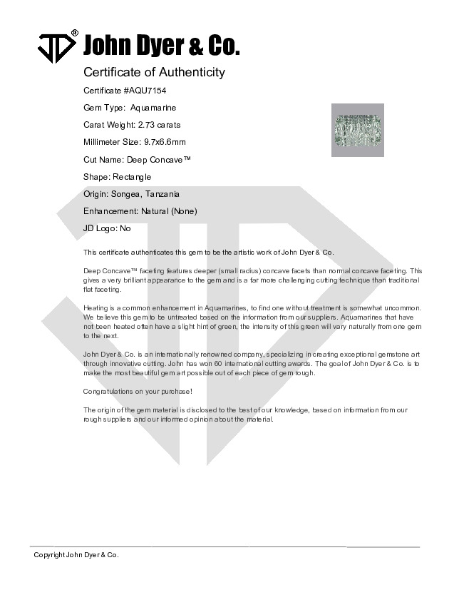 Baby Dyer Aquamarine Deep Concave™ Cut 2.73 carats (Sold)