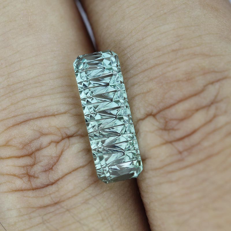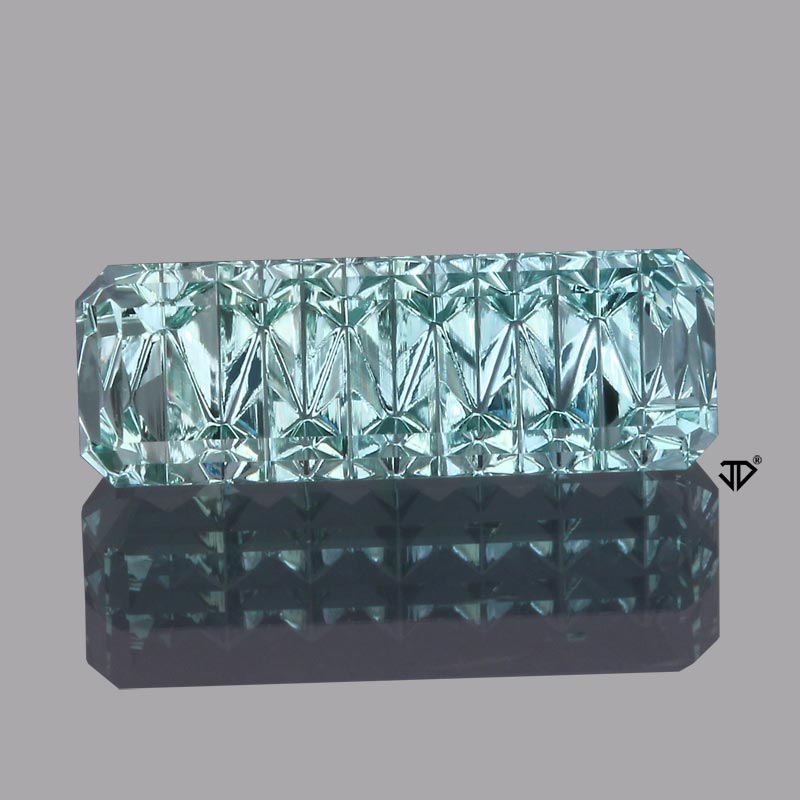Rectangular shaped, fantasy cut aquamarine, ZigZag™ style.