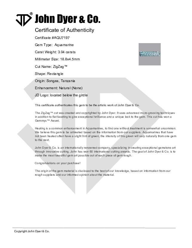 This 3.04-carat Aquamarine gemstone features the ZigZag™ cut.