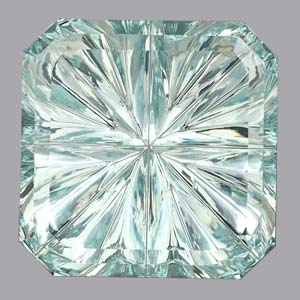 A gorgeous, square, greenish aquamarine with our signature fantasy style of cutting: Starbrite™.
