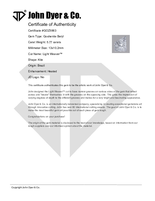 Baby Dyer Goshenite Beryl Light Weaver™ Cut 5.77 carats (Sold)