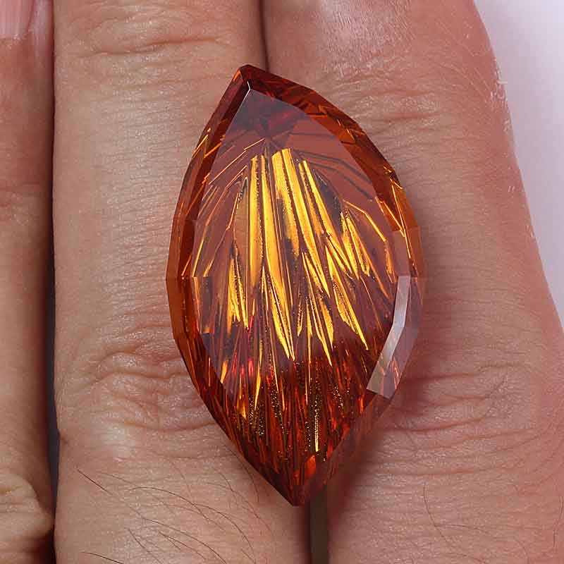This 31.73-carat Citrine gemstone features the Dreamscape™ cut.