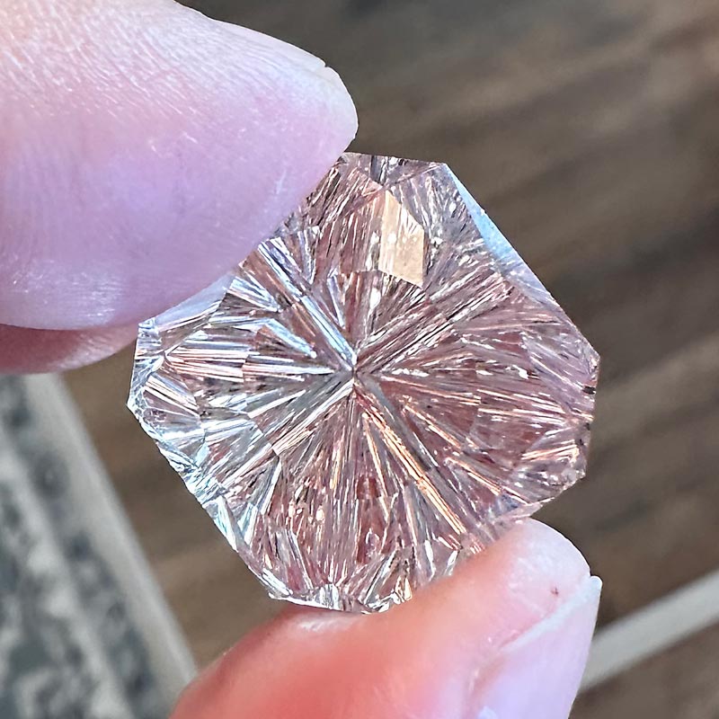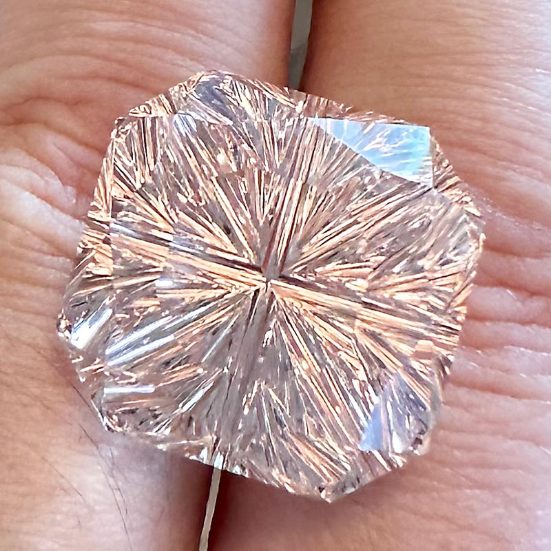 This 32.11-carat Morganite gemstone features the Deep Concave™ cut.
