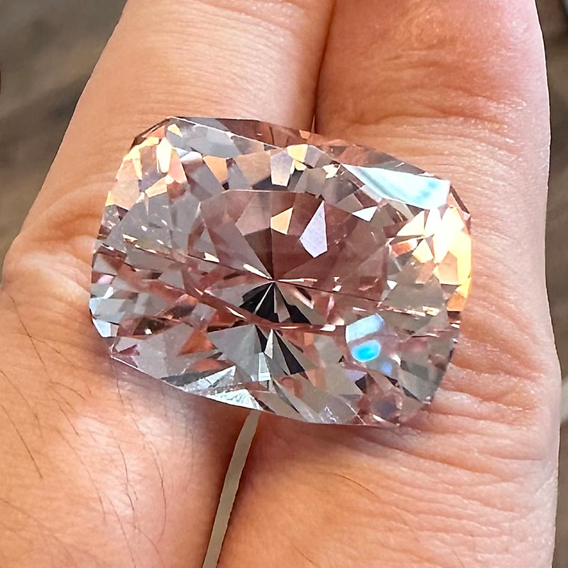 This 36.83-carat Morganite gemstone features the Regal Radiant™ cut.