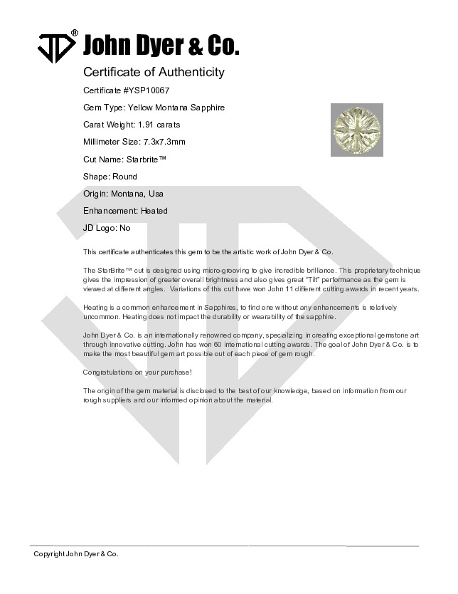 This 1.91-carat Yellow Montana Sapphire gemstone features the Starbrite™ cut.