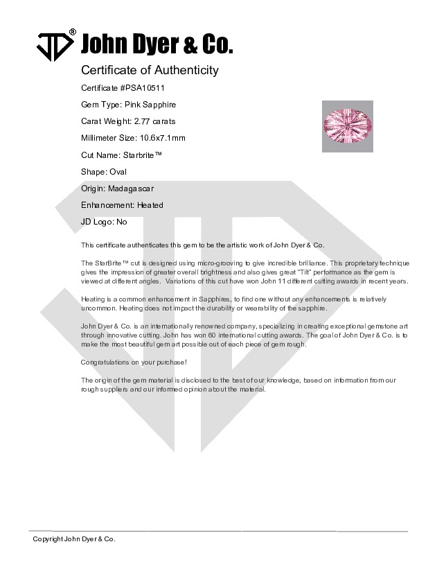 This 2.77-carat Pink Sapphire gemstone features the Starbrite™ cut.