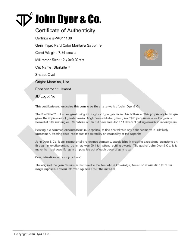 This 7.34-carat Parti Color Montana Sapphire gemstone features the Starbrite™ cut.