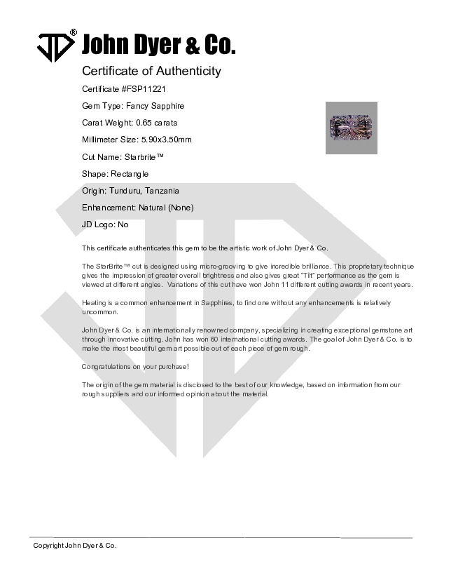 This 0.65-carat Fancy Sapphire gemstone features the Starbrite™ cut. Refer to the table below for detailed information about this gemstone.