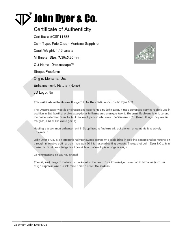 Pale Green Montana Sapphire Dreamscape™ Cut 1.16 carats (Sold)