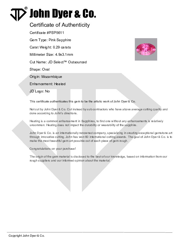 This 0.29-carat Pink Sapphire gemstone features the JD Select™ Outsourced cut.