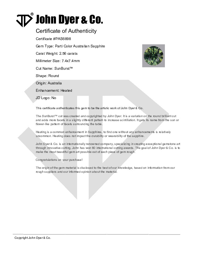 This 2.56-carat Parti Color Australian Sapphire gemstone features the SunBurst™ cut.