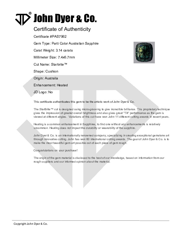 This 3.14-carat Parti Color Australian Sapphire gemstone features the Starbrite™ cut.