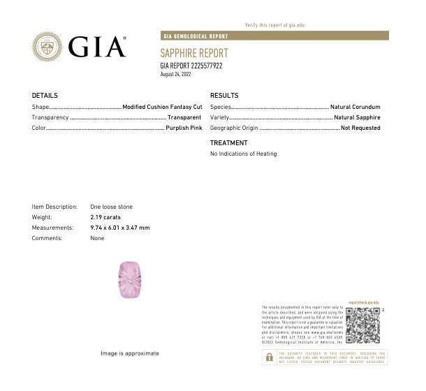 This 2.19-carat Pink Sapphire gemstone features the Starbrite™ cut.