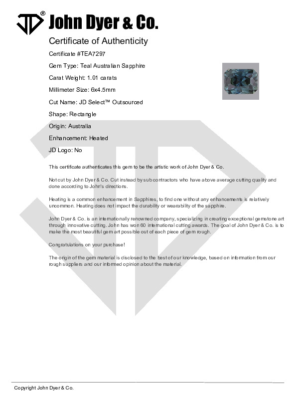 This 1.01-carat Teal Australian Sapphire gemstone features the JD Select™ Outsourced cut.