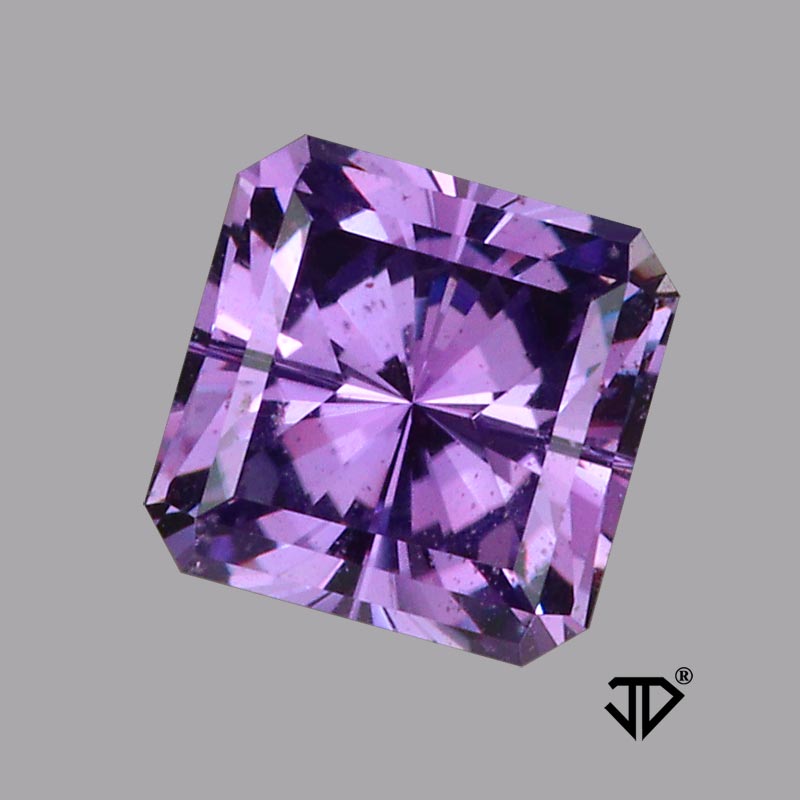 Sparkly square purple flat faceted sapphire with natural color.