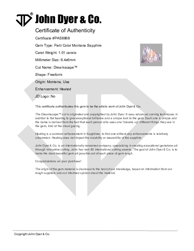 This 1.01-carat Parti Color Montana Sapphire gemstone features the Dreamscape™ cut.