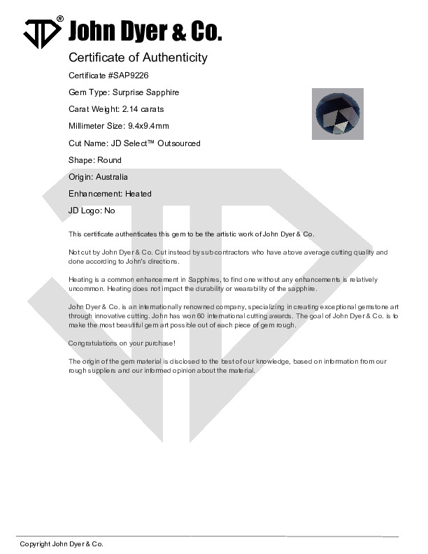This 2.14-carat Surprise Sapphire gemstone features the JD Select™ Outsourced cut.