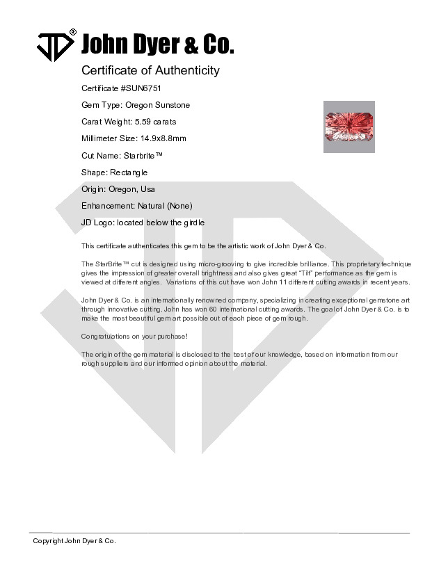 This 5.59-carat Oregon Sunstone gemstone features the Starbrite™ cut.