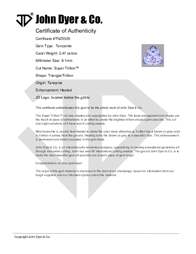 Tanzanite Super Trillion™ Cut 2.47 carats (Sold)