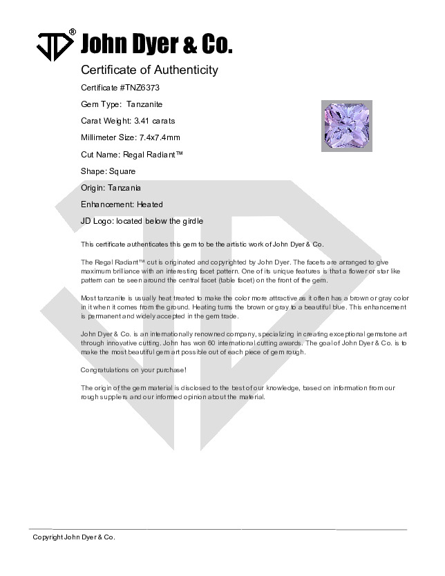 This 3.41-carat Tanzanite gemstone features the Regal Radiant™ cut.