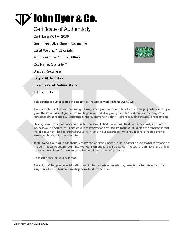This 1.52-carat Blue/Green Tourmaline gemstone features the Starbrite™ cut. Refer to the table below for detailed information about this gemstone.